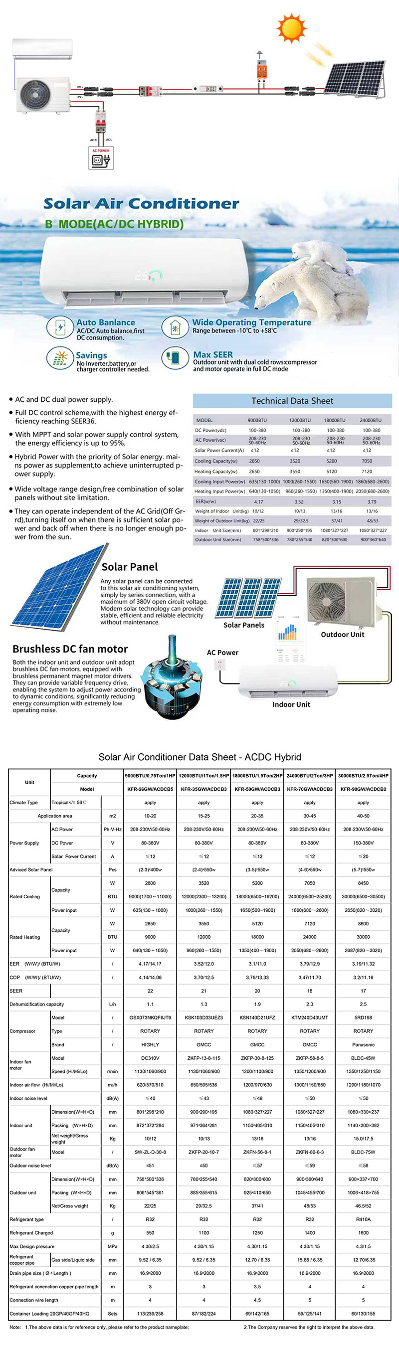 Solar Hybrid Air ConditionerSolar Air Conditioner 12000/18000/24000BTU