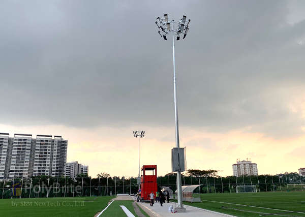 We SBM NewTech provided high mast poles and lighting fixtures for two connected football fields, which are mainly used for amateur games and professional training.