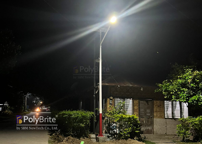 Online inquiryThe client choose 60W LED POWER, 80W Monocrystalline SOLAR PANEL, 5M hot dip galvanized Pole. The lamp working 10-12hours at night and 3days back up automatically . Highly improved local safety.