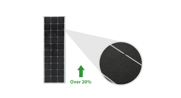 Monocrystalline and polycrystalline panels are two general types of solar panels used in solar street lights. Monocrystalline panels have much higher efficiency compared to polycrystalline solar panels. With the same panel dimensions, the more efficient monocrystalline panels would generate more power than polycrystalline panels.
